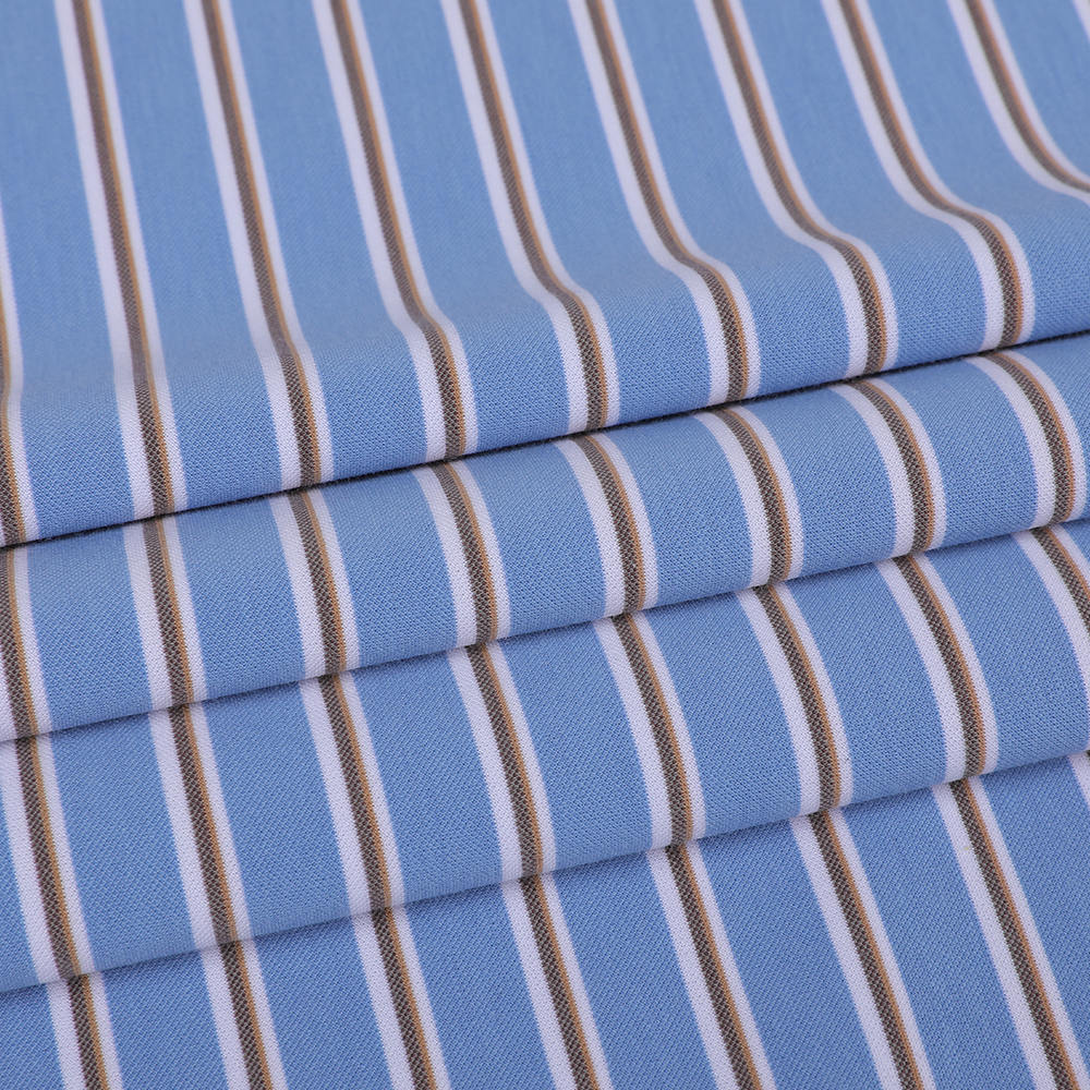 Suprafața țesăturii de cămașă cu dungi crocante cu punct de sus este distribuită cu o textură fină și uniformă de susan, care este împletită cu modelul clasic cu dungi pentru a forma o frumusețe vizuală unică, care nu numai că menține eleganța tradițională a elementelor cu dungi, dar adaugă și straturi bogate de detalii.