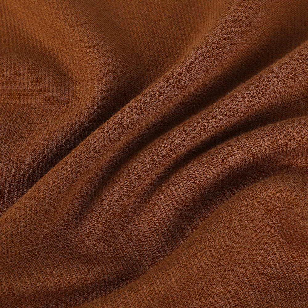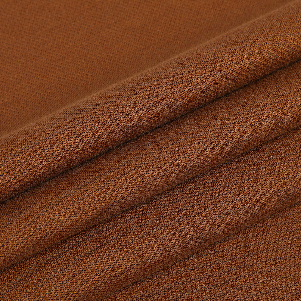 Interbaterea Jacquard cu două fețe Jacquard Confortabil Spandex Tricotat pentru femei a obținut o dublă optimizare a performanței și estetice a țesăturilor printr-o proporție atentă și o tehnologie avansată. Compoziția țesăturii este compusă din 54% bumbac, 39% poliester și 7% spandex învelit de brocart, iar combinația dintre cele trei oferă țesăturii avantaje de performanță unice. Bumbacul, ca fibră naturală, oferă o bună absorbție de umiditate, respirabilitate și prietenie cu pielea, asigurând confort atunci când purtați. Adăugarea de poliester îmbunătățește rezistența la uzură a țesăturii, rezistența la riduri și recuperarea elastică, ceea ce face ca îmbrăcămintea să fie mai ușor de îngrijit și mai puțin probabil să se deformeze. Proiectarea spandexului învelit de brocart nu numai că menține elasticitatea bună a spandexului, dar, de asemenea, previne eficient expunerea spandexului, îmbunătățind în continuare durabilitatea și stabilitatea morfologică a țesăturii. În ceea ce privește măiestria, utilizarea tehnologiei avansate de Jacquard cu două fețe face ca țesătura să prezinte modele rafinate pe ambele părți, sporind stratul vizual. Structura delicată de tricotat conferă țesăturii o bună ductilitate și respirabilitate, se poate adapta la schimbările din curba corpului uman și oferă o experiență montată, dar nu strânsă. În același timp, aranjarea strânsă a structurii tricotate îmbunătățește, de asemenea, retenția de căldură a țesăturii, ceea ce o face potrivită pentru purtare într -o varietate de condiții climatice.