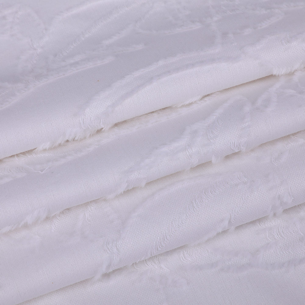 Jacquard Trimit fir de lux respirabil țesătură tricotată, amestecată cu 90% bumbac de înaltă calitate și 10% mătase fină. Acest raport unic este conceput pentru a optimiza performanța țesăturii, asigurând o bună absorbție de respirabilitate și umiditate și oferind țesăturii o atingere de lux unică. În proiectarea țesăturilor, folosim un proces fin Jacquard Edge și integrăm în mod inteligent modele complexe în țesătură prin abilități manuale. Acest design nu numai că îmbunătățește efectul vizual al țesăturii, dar îi oferă și o valoare artistică unică și o semnificație estetică. În același timp, utilizarea unei structuri tricotate face ca țesătura să aibă o elasticitate și o recuperare bună, ceea ce se poate potrivi perfect formei corpului și poate satisface nevoile duale ale femeilor pentru confort și frumusețe. În ceea ce privește performanța, această țesătură funcționează bine. Adăugarea de fibre de bumbac face ca țesătura să aibă o bună absorbție a umidității și performanțe de transpirație, ceea ce poate menține pielea uscată și confortabilă chiar și în medii la temperaturi ridicate. Lusterul delicat de mătase adaugă o notă de eleganță și lux la țesătură și îmbunătățește textura generală. În plus, țesătura are, de asemenea, o rezistență bună la uzură și rezistență la riduri, care poate rezista la testul uzurii și spălării zilnice și să mențină strălucirea și textura originală a țesăturii.