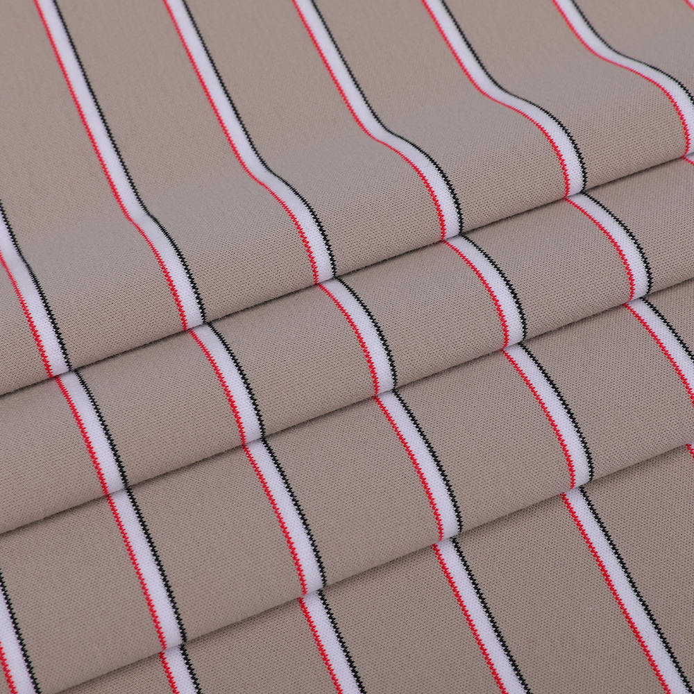 Confortabil ecologic, ecologic, LA LA LICE-THIRT TRIMENT LICHID DUMIND FILURI Adoptează tehnologia avansată de dungi de vopsire la fire. Un proces precis de vopsire a firelor, asigură exactitatea și stabilitatea modelului de dungi, împiedicând eficient decolorarea și decolorarea după purtarea sau spălarea pe termen lung. Fenomen de deformare, care prezintă efecte vizuale delicate și de lungă durată. Designul dungi nu numai că îmbogățește aspectul țesăturii, dar îmbunătățește moda și unicitatea îmbrăcămintei. În ceea ce privește procesarea țesăturilor, folosim tehnologia de finisare a amoniacului lichid pentru a îmbunătăți semnificativ moliciunea și netezimea țesăturii prin optimizarea microstructurii fibrelor de bumbac, asigurând în același timp o bună absorbție a umidității respirabilității și performanța transpirației. Aplicarea acestei tehnologii permite țesăturii să reglementeze în mod eficient temperatura corpului, menținând în același timp o atingere naturală și confortabilă, să se adapteze la diverse medii climatice și să ofere purtătorului confort pentru toate vremea. În plus, această țesătură urmărește cu strictețe principiile producției ecologice și folosește fibre naturale de bumbac de înaltă calitate ca materie primă pentru a evita utilizarea excesivă a substanțelor chimice și pentru a reduce impactul asupra mediului. Ca un proces de finisare ecologic, finisarea amoniacului lichid reduce în continuare emisiile de ape uzate și consumul de energie și respectă standardele internaționale pentru producția ecologică. În ceea ce privește durabilitatea, țesătura a fost tratată cu un proces special și are proprietăți bune anti-împingere și anti-redactare. Poate menține un aspect neted și crocant pentru o lungă perioadă de timp și poate satisface diverse nevoi de purtare, cum ar fi timpul liber zilnic și sporturile ușoare. În același timp, elasticitatea și recuperarea sa bună asigură potrivirea și purtarea vieții îmbrăcămintei.